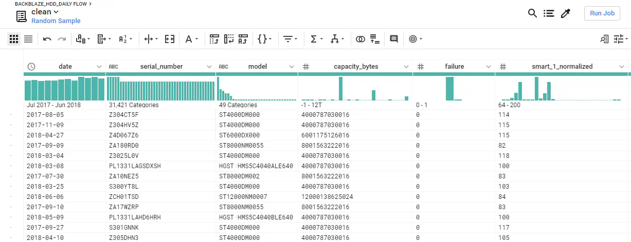 For effektivt at forberede og rense store datasæt, kan jeg anbefale Dataprep-værktøjet på Google Cloud Platform. Dataprep giver dig mulighed for at lave “opskrifter” til transformationer på en prøve af dit datasæt og derefter anvende disse transformationer på hele dit datasæt parallelt med et Dataflow-job. Meget praktisk!