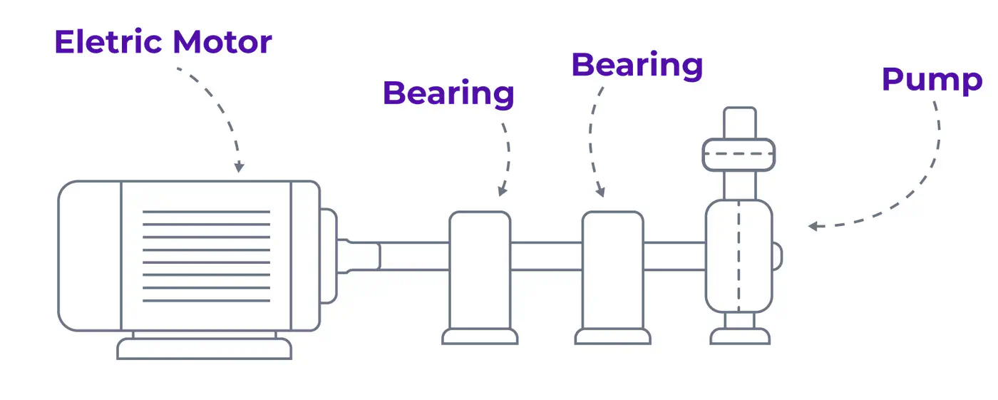For at gøre det nemmere at snakke om eftermontering af sensorer for prædiktiv vedligehold vil vi igennem blog posten bruge et eksempel med en 500kW elmotor som driver en applikation. I vores eksempel er applikationen en pumpe. I din virksomhed er det måske en anden applikation så som HVACs, blæsere eller noget helt tredje.