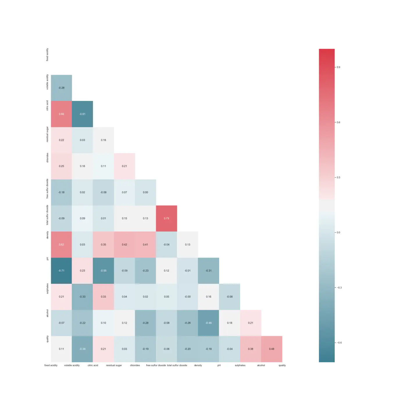 From this, it can be concluded that the dataset is highly imbalanced. Not only is the majority of the red wines classified as a quality level of 5 or 6, there also do not exist any observations on each end of the scale, making it hard for our model to learn about these five scores (0 to 2, and 9 to 10).