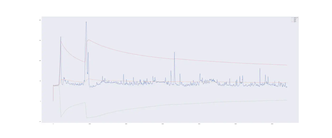 We additionally only perform this test on sensor 47, which has shown to have a high feature importance for the outcome. If you want to implement this in production, you would have to do the following for all 51 sensors or look in to creating a multivariate control chart.
