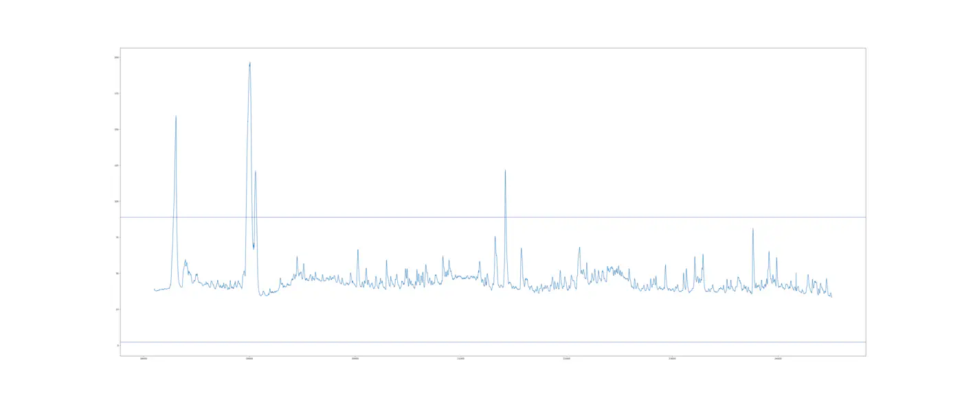 When using the previous interval (Interval I) to make the upper and lower control limits used on Interval II, we get 442 observations that are observed outside of the control limits! Interesting, none of them are at the initial breakdown and is therefore noise. For comparison, if we introduced data leakage, and used data from Interval II to set the Upper and Lower Control limit, we would still get 119 observations outside of the control limits for sensor 47 - again not close to the breakdown. This is illustrated in the following graph: