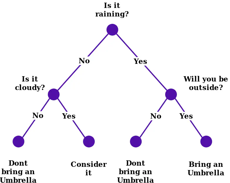 In machine learning there are different approaches to solving a given task. Some methods give traceability and transparency from the start such as decision trees, Bayesian classifiers, and random forest. These are explainable because you can see how the model produced a given output be that a prediction or classification. An example using a decision tree can be seen in the figure below.