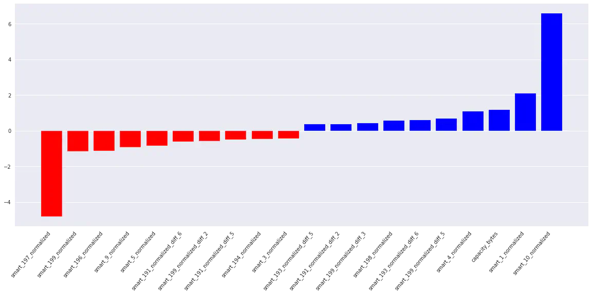Interessant nok ser vi, at de øjeblikkelige værdier af disse S.M.A.R.T. parametre er vigtige for modellen: