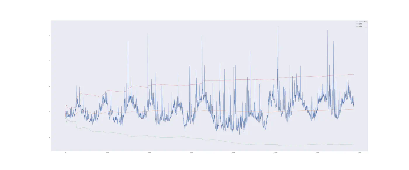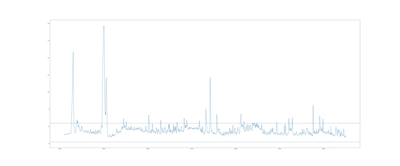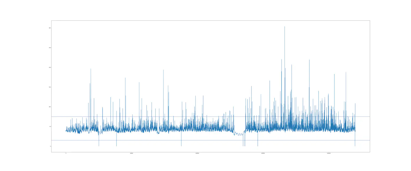 Til test af tilstandsbaseret vedligeholdelse via kontroldiagram bruger vi det samme vandpumpedatasæt, som vi brugte til forudsigelig vedligeholdelse, da dette giver os muligheden for at sammenligne de to tilgange. Vi ved at dataene har et nogenlunde stabilt mønster med nogle få outliers når vandpumpen kører normalt (se nedenfor). Dette skal gøre det let for et kontroldiagram at detekterer dem!