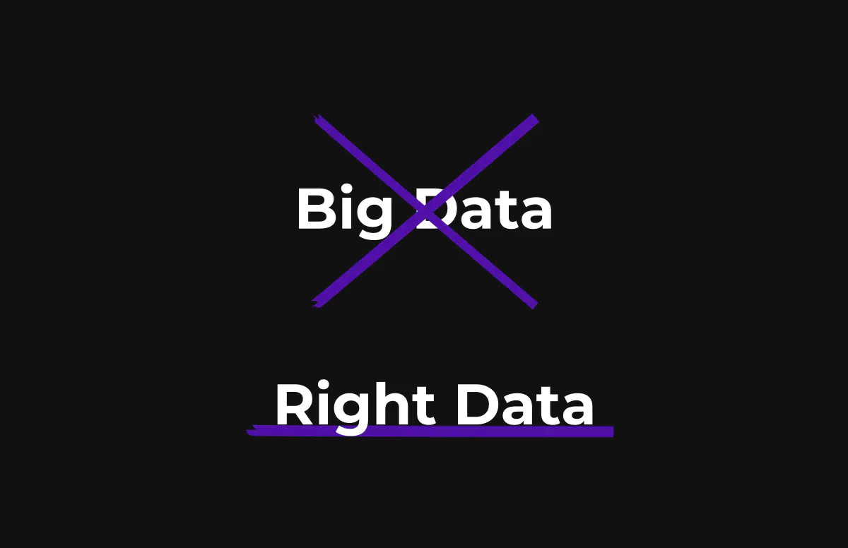 Dette er grunden til, at vi oprigtigt beder dig om at holde op med at tænke på big data og bestemt ikke terabytes eller petabytes. Mængden af data bør ikke være et strategisk mål og volumen bør ikke være en hoveddriver, når du fastlægger kvaliteten af dine data. I stedet vil vi bede dig om at tænke over right data. Right Data handler om at være strategisk med hvilke data, du indsamler, og at have et formål med at indsamle dem. Du starter med at se på din strategi og se, hvilke strategiske mål du har. Baseret på dine strategiske mål bestemmer du, hvilke data du skal indsamle ved at følge disse enkle trin.