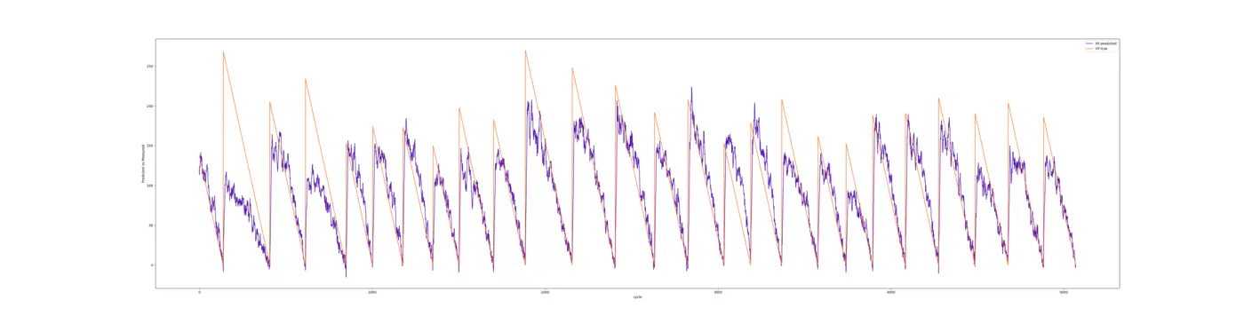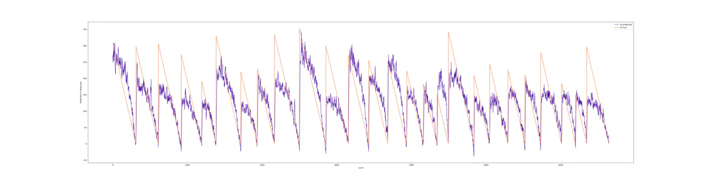 Den orange linje på billedet viser den sande resterende brugbare levetid, mens den lilla linje viser den estimerede værdi ifølge modellen.